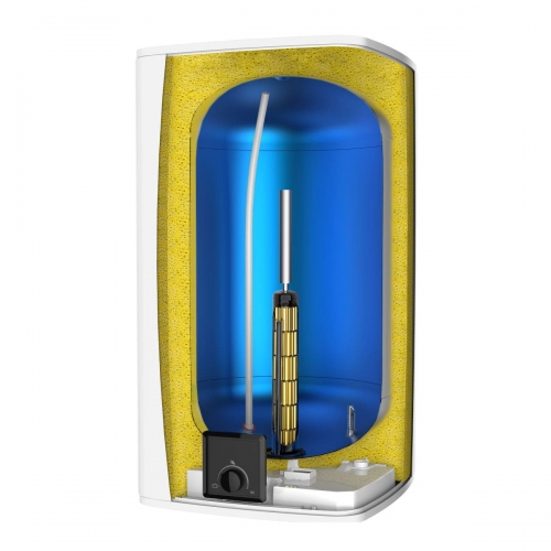 Внутренний бак покрытый стеклокерамикой с повышенным содержанием титана и меди против электрохимической коррозии и бактерий. В качестве теплоизоляции в водонагревателях используется полиуретановая пена, обладающая высокими теплоизолирующими свойствами. Материал позволяет экономить электроэнергию и сохранить воду горячей в течение длительного времени.